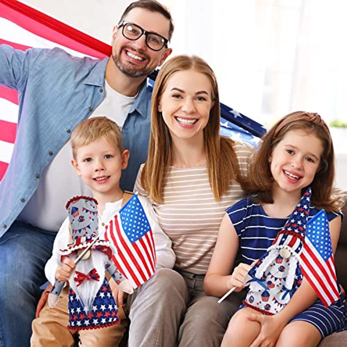 Handcrafted Design: Gnome Decorations Measure 11.5 Inch x 3.9 Inch and Are Suitable for All Ages. Gnomes Feature Stars and Stripes Design for a Unique Touch. Ideal for 4th of July Parties.