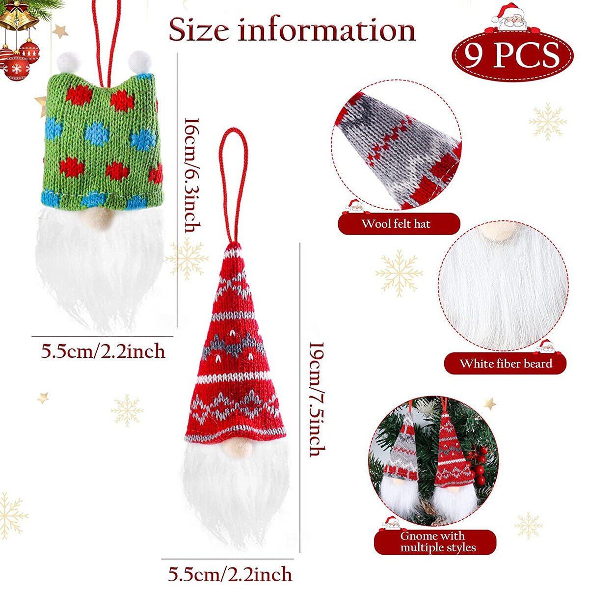 9PCS Christmas Gnome Plush Elf Dolls Handmade Faceless Dwarf Rudolph Pendants