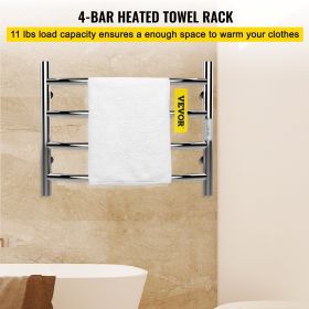 VEVOR Heated Towel Rack, Mirror Polished Stainless Steel Electric Towel Warmer with Built-in Timer, Wall-Mounted for Bathroom, Plug-in/Hardwired, UL C (Craft: Polished Wiredrawing, Bars and Shapes: 4 Bars)