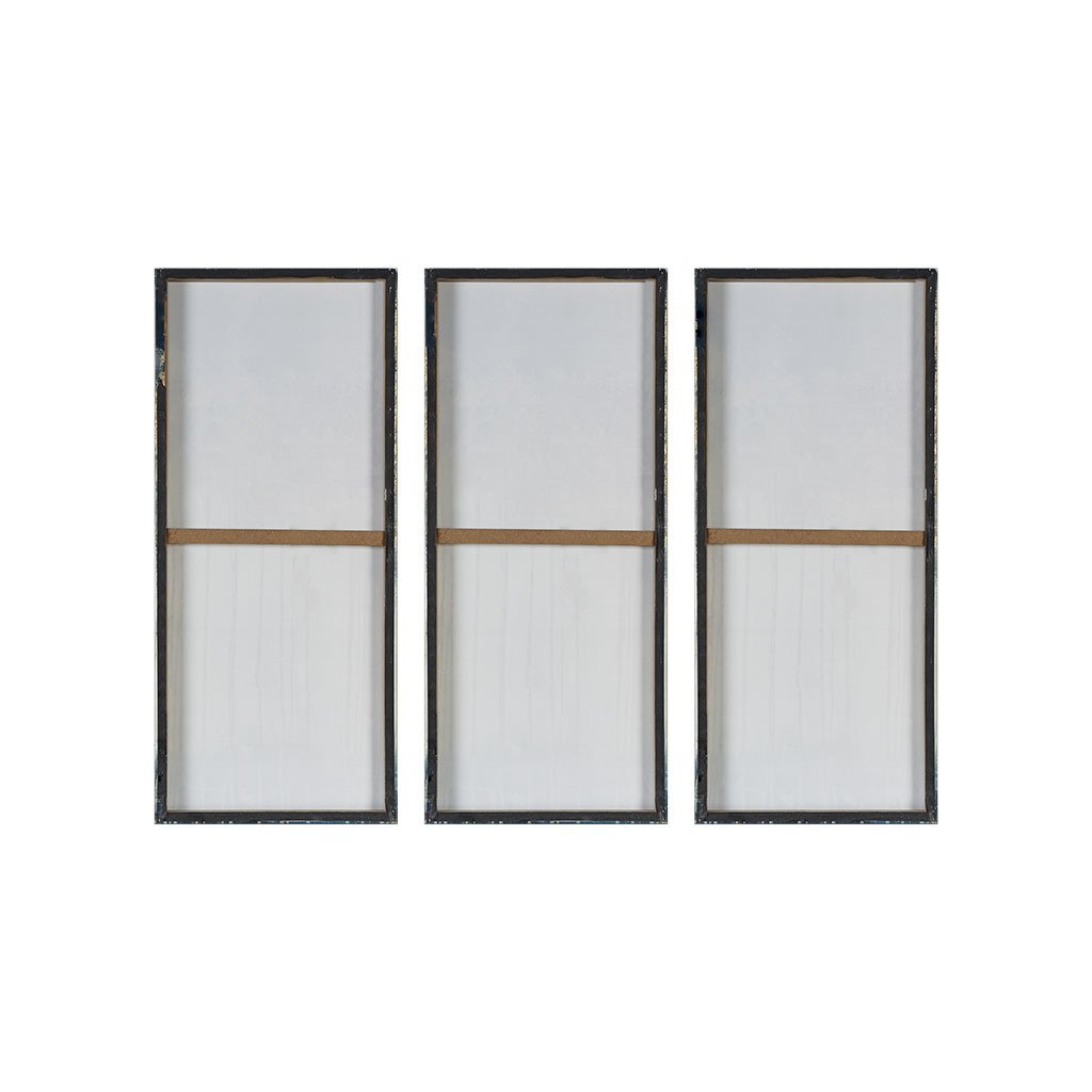 Add a splash of color and style to your decor with the Madison Park Dewy Forest Gold Foil Abstract 3-piece Canvas Wall Art Set by Artist Delsie Walters. Each gel coated canvas features an abstract tree design in deep teal and blue hues, combined with a metallic gold foil for the perfect touch of glam. The gel coat provides an added texture, a glossy finish, and protects the colors from fading over time; while two D-rings on the reverse of each canvas makes this set easy to hang on your walls. Comes as a three piece set, each piece measuring 15x35". Simply hang all together for a large focus piece or separately throughout your home for a more stylized approach fitting any space. This 3 piece canvas wall art set is the perfect art piece to brighten and elevate your home decor. Wipe clean with a damp cloth.
