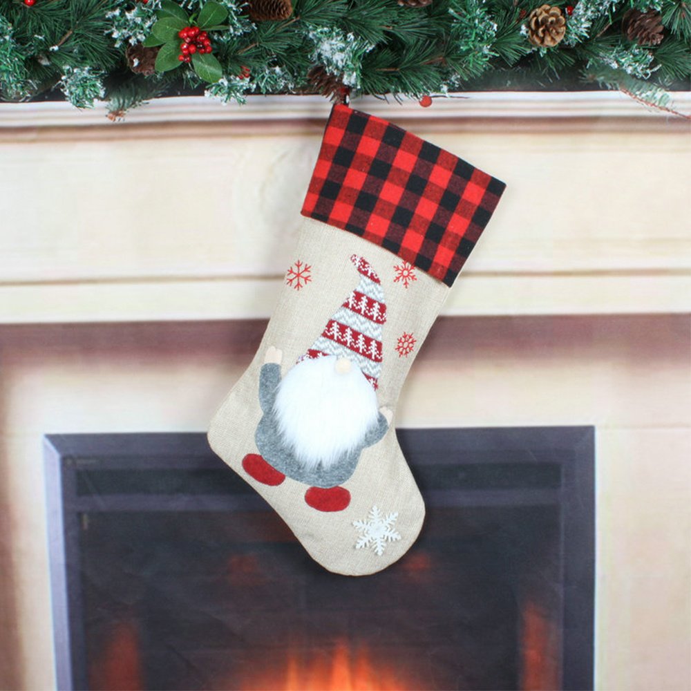 Christmas Stockings 19" Xmas Plaid Gnome Santa Stocking for Home Party Decoration