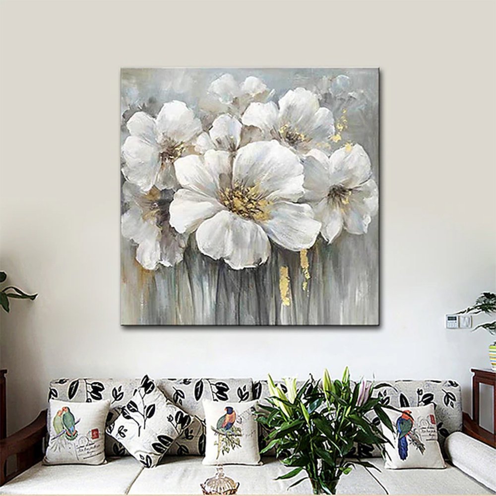 Home > Hand Painted Oil Paintings Hand Painted Square Floral / Botanical Pop Art Living Room Hallway Bedroom Luxurious Decorative Painting